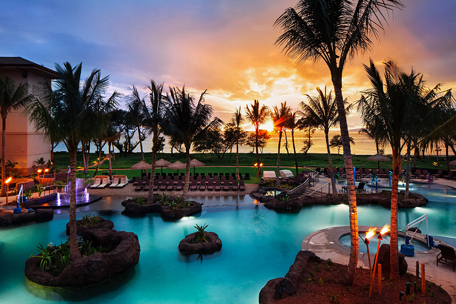 The Ka’anapali Beach Club, located on the shores of Maui, is an upscale resort known for its iconic 60-foot whale-shaped pool and offers a plethora of amenities designed for relaxation and leisure. Guests can take in panoramic views of the Pacific Ocean and the West Maui Mountains. The resort’s beachfront access allows for a variety of water activities, such as snorkeling and kayaking. Dining options are diverse, ranging from casual poolside fare to upscale dining experiences, all emphasizing local Hawaiian flavors. Additionally, the resort hosts various cultural activities, including lei-making workshops and hula lessons, immersing guests in the rich Hawaiian culture. This resort truly encapsulates a luxurious Hawaiian getaway.